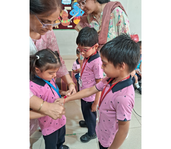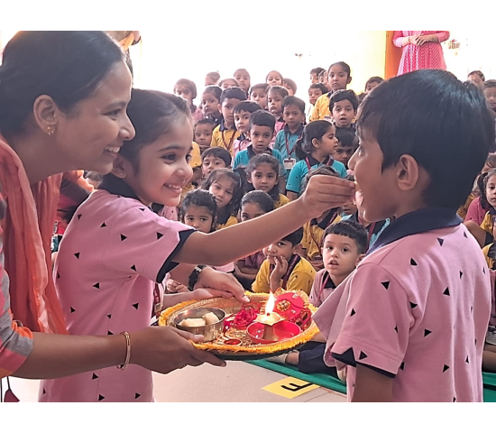 Our tiny tots celebrated Rakshabandhan with great joy and enthusiasm. Sisters tied colorful rakhis on the wrists of their brothers, and the children exchanged sweets and smiles. The celebration beautifully reflected the values of love, care, and togetherness. ????